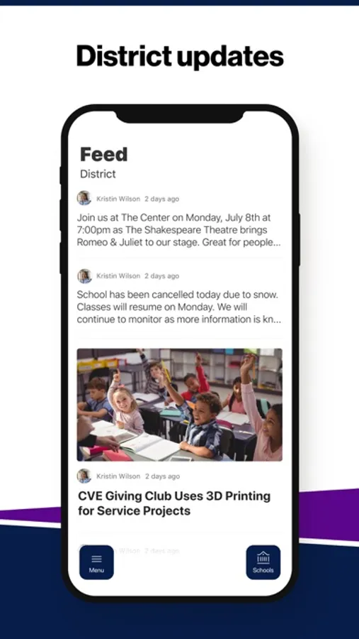 In the Live Feed is where you'll find updates from the administration about what's going on in the district right now. Whether that's celebrating a student's success, or reminding you about an upcoming deadline.