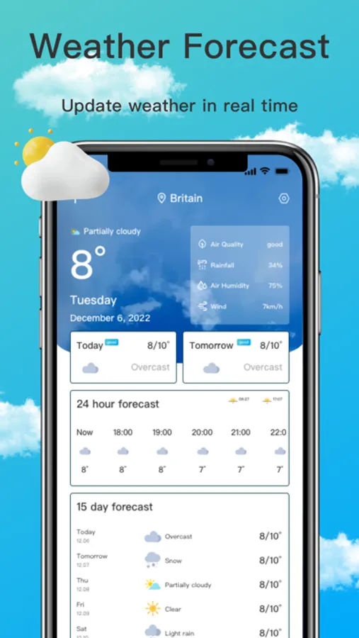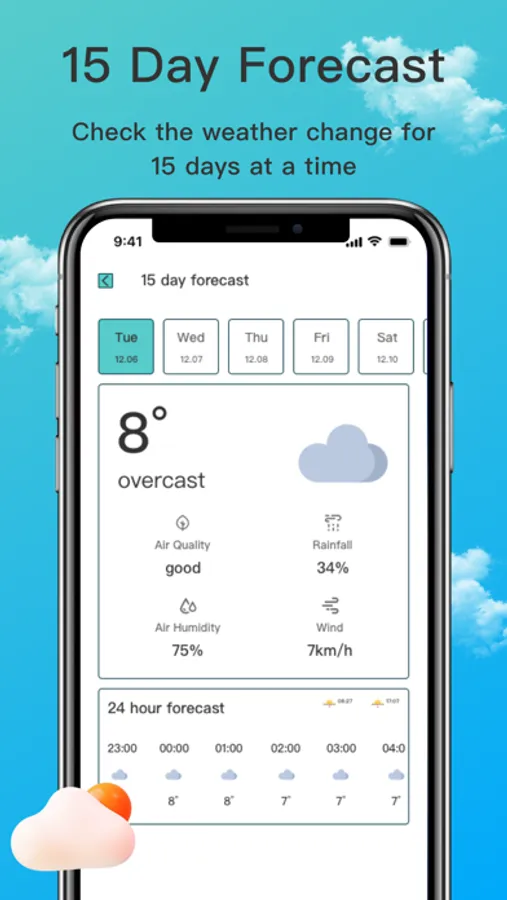 Basic Features:Detailed 24-hour weather forecast to keep abreast of the day's weather news.Forecast the weather for the next 15 days so you can plan your trip 15 days in advance.Choose a good day to plan your trip with a built-in calendar.Support widgets to keep the weather at a glance, and one click to access the detailed forecast.
