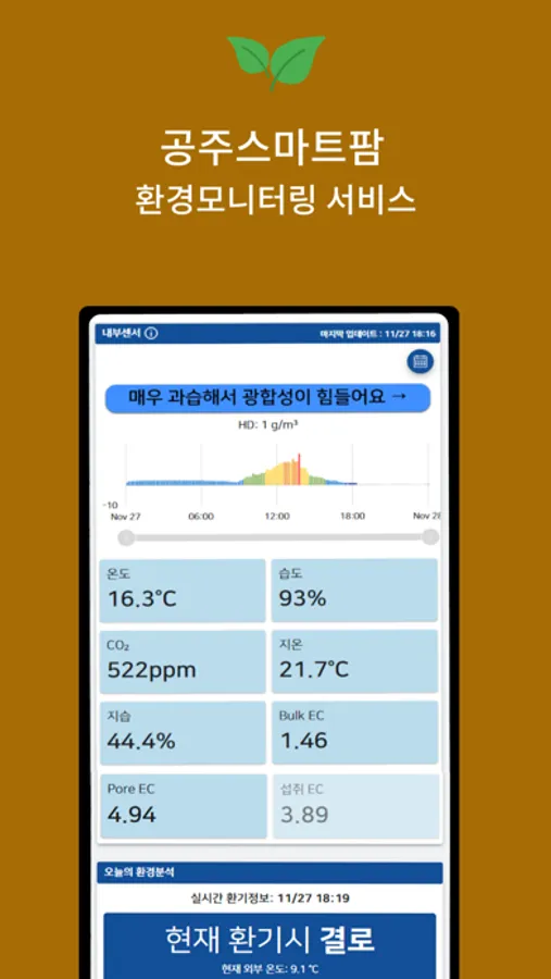 - 충남 공주시 내 스마트팜 연동농가 대상 실시간 환경데이터 제공