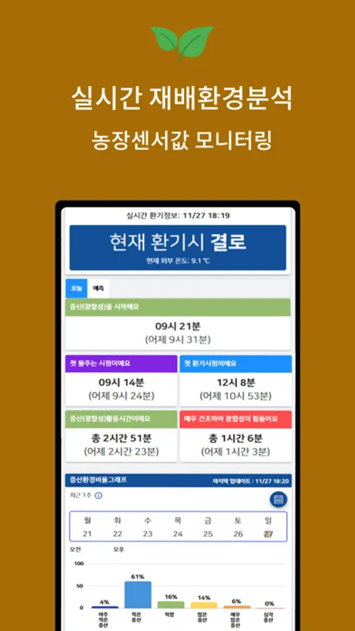 - 내일의 예측 환기, 관수, 증산적합 정보 제공