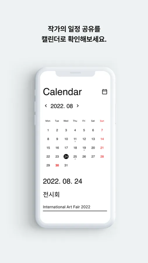 캘린더를 통해 작가의 일정을 확인 후 Contact 기능으로 약속을 잡아보세요.