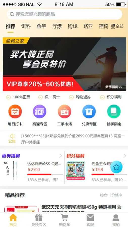 渔具之家是一款提供渔具商品服务平台,APP具有以下特点: