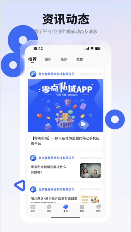 资讯板块用于发布企业信息通知等,方便更好的了解企业的最新动态及消息。