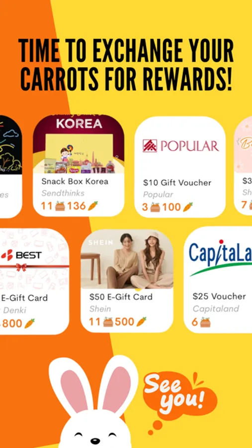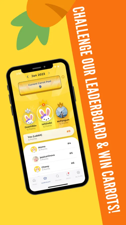 Leaderboard - Earn more carrots by participating in activities like quizzes and surveys, and redeeming merchant deals, which will contribute to the carrot pool. The carrot pool will accumulate points, and Labbit will give the total collection at the end of the month to the top 10 users with the highest points.