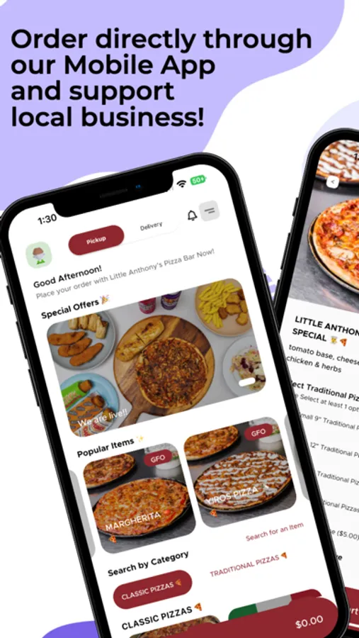 Download the Little Anthony’s Pizza Bar App today to gain access to our full menu, order through the app, receive exclusive in-app discounts and gain reward points for each order to use on future purchases!