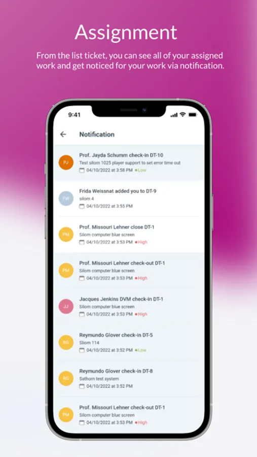 - Stay in know when the ticket are assigned, updated and completed via notification.