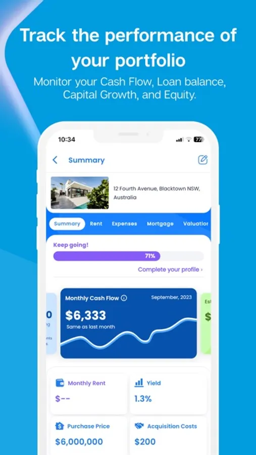 - Track your entire investment portfolio in one place, including rental yield, capital gains, and cash flow.
