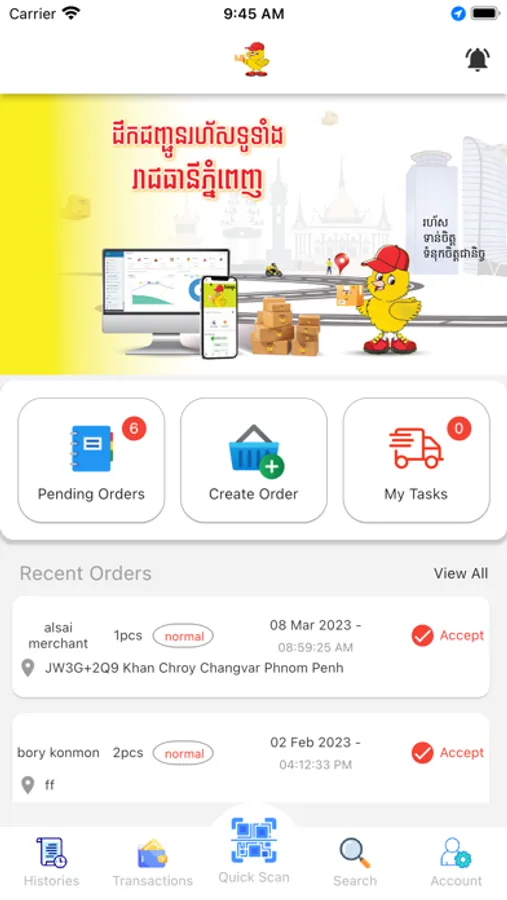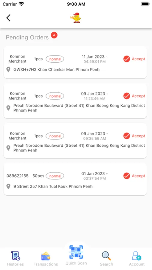Observing the growth of the transportation sector in the Kingdom of Cambodia, Kon Mon Delivery was also established in 2021 to contribute and promote the transportation sector to be more widespread and more prosperous in the country. With the company's proverb "Fast delivery and always trust" "especially good service and high confidence, Kon Mon Delivery has received strong support from all customers who use our service. Kon Mon Delivery provides services and delivery of small and large goods in accordance with the laws of Cambodia. To be more convenience for customers, Kon Mon Delivery Company has also created the delivery app. This delivery app will make it easier for every customer to order, purchase and deliver their goods quickly and confidently. Kon Mon Delivery will strive to serve the best of all customers. Kon Mon Delivery would like to thank all the customers who have always supported our service and this app. We wish all customers with healthiness, success, longevity and vitality forever.