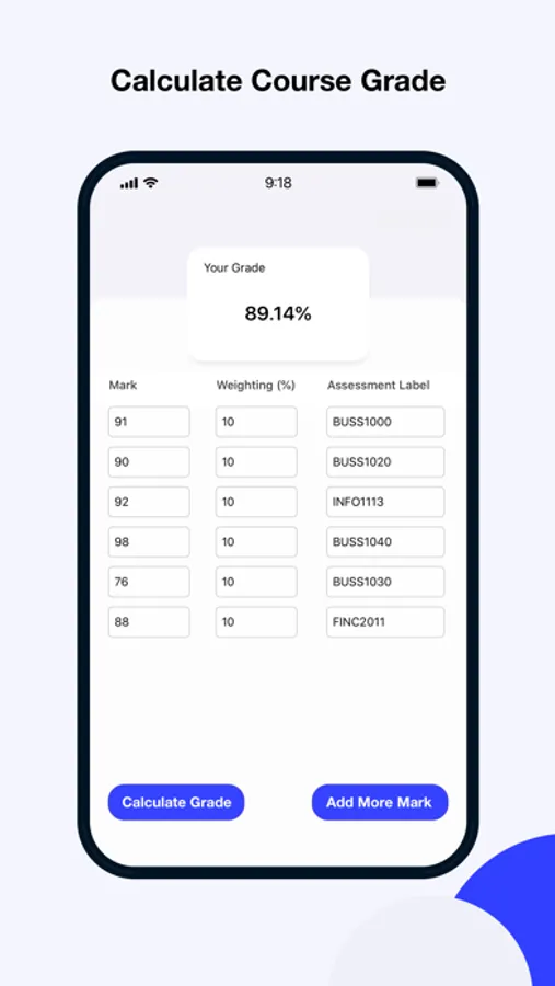 University Grade Calculator Screenshots