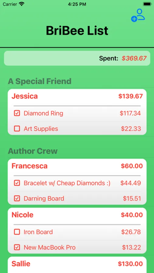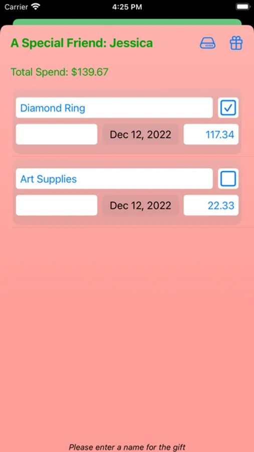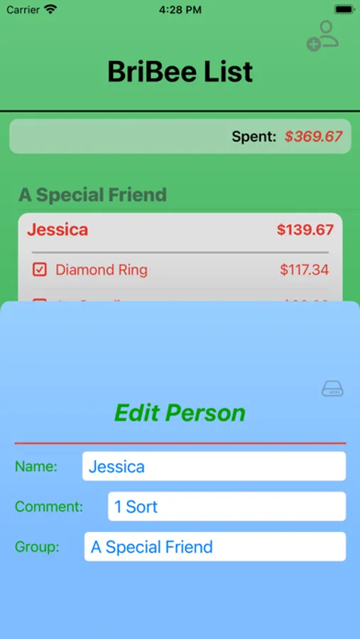 This first edition app is targeted towards the simplification for quantifying expenses by person/group and total for budgeting. Great and simply method to track gift purchases and the status of each purchase. The target platforms for this app are both the iPhone and iPad; however, the screen designs are focused toward the iPhone for version 1.0.