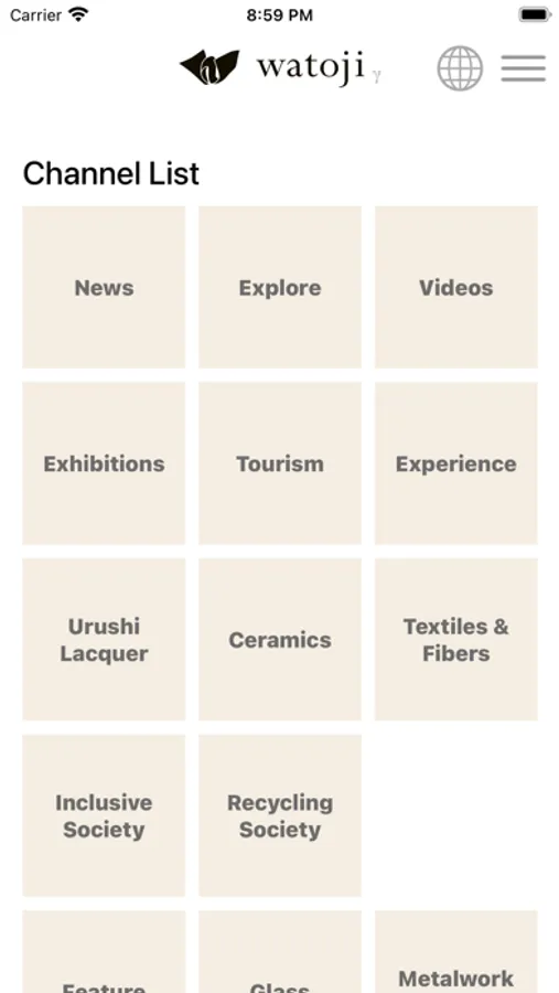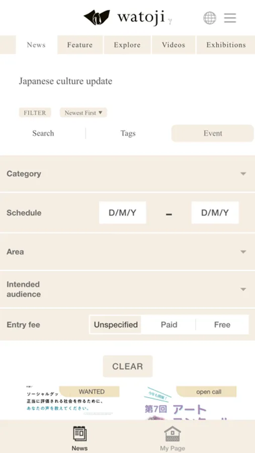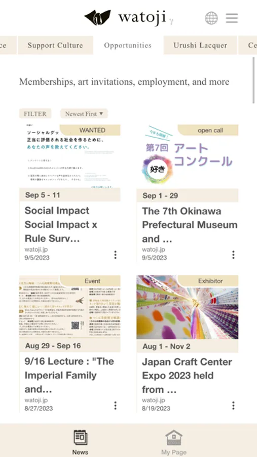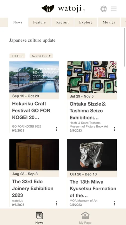 - You can freely select and sort the topics you want to read from a variety of channels such as "videos", "exhibitions", "Tourism", "learning and experiences", "Culture and Technology", "Recycling Society", "Tea ceremony", "Urushi-Lacquer", "Ceramics", " Textiles & Fibers".
