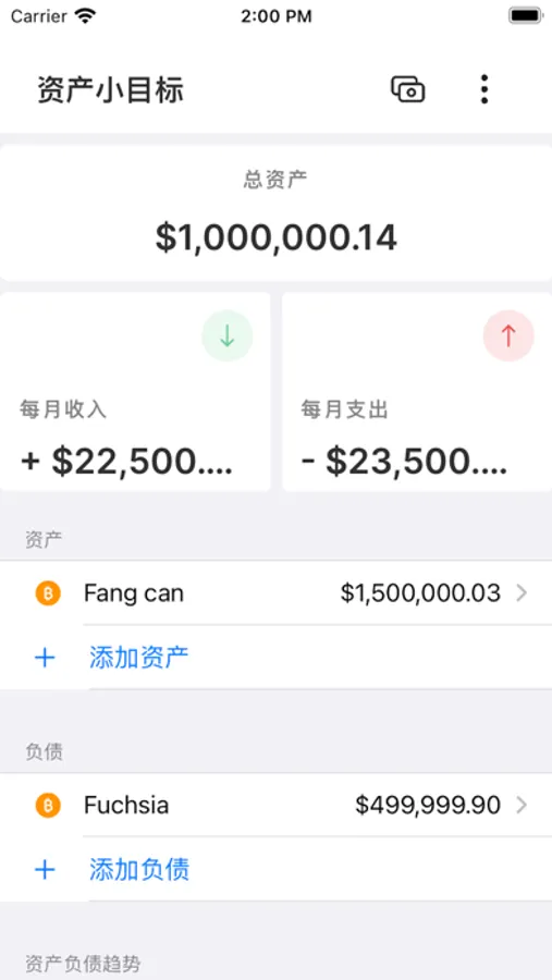 记录资产、负债、支出、收入,根据记录生成资产预测的资产管理软件~