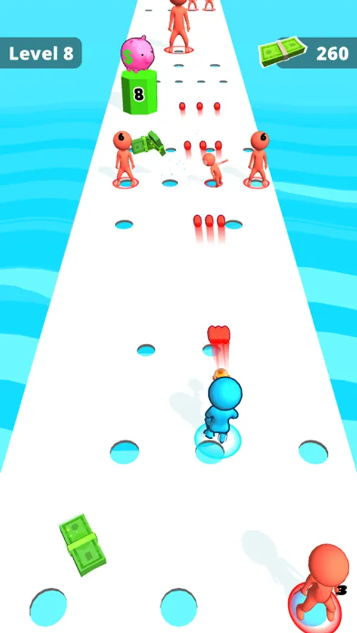Shoot them all and let them fall into the hole! Upgrade your gun and beat all enemies.