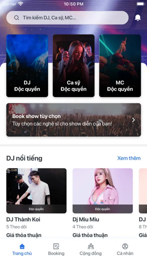- Đặt show đơn, đặt show hàng loạt nghệ sỹ