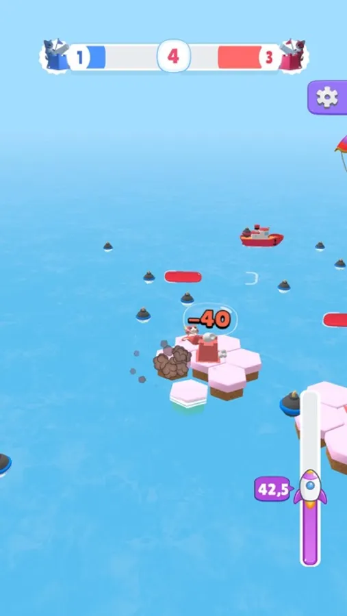 When you are playing this game, you will see planes and ships. You will see planes leaving bombs by the parachutes. You can blow up the bombs. You can also eliminate your enemies by hitting the planes and ships. But be careful. This attack you made can damage yourself too.