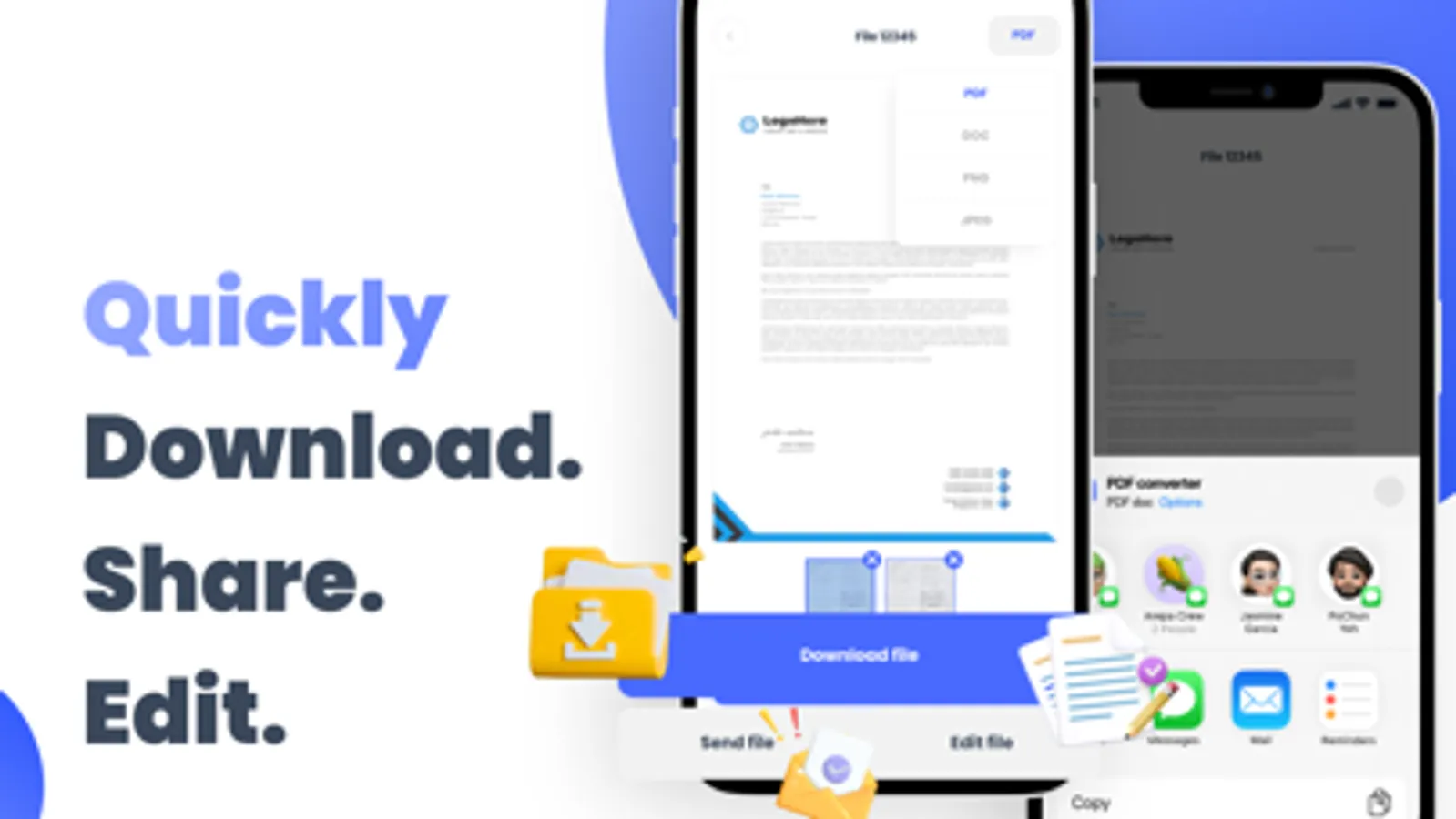Convert files from WORD (DOC), JPG, PNG, XLS, TXT, PPT, WEBP, EPUB, FB2, HTML and other popular formats to PDF and vice versa on your iPhone. Share converted files, print or save them to cloud service.
