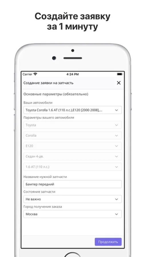 Для создания заявки, достаточно указать данные об автомобиле и название нужной вам запчасти.