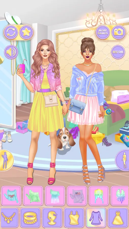 Show your creativity in pastel girl dress up games, BFF sisters are waiting for the makeover and cool clothes. Help 2 best friends become the superstars!