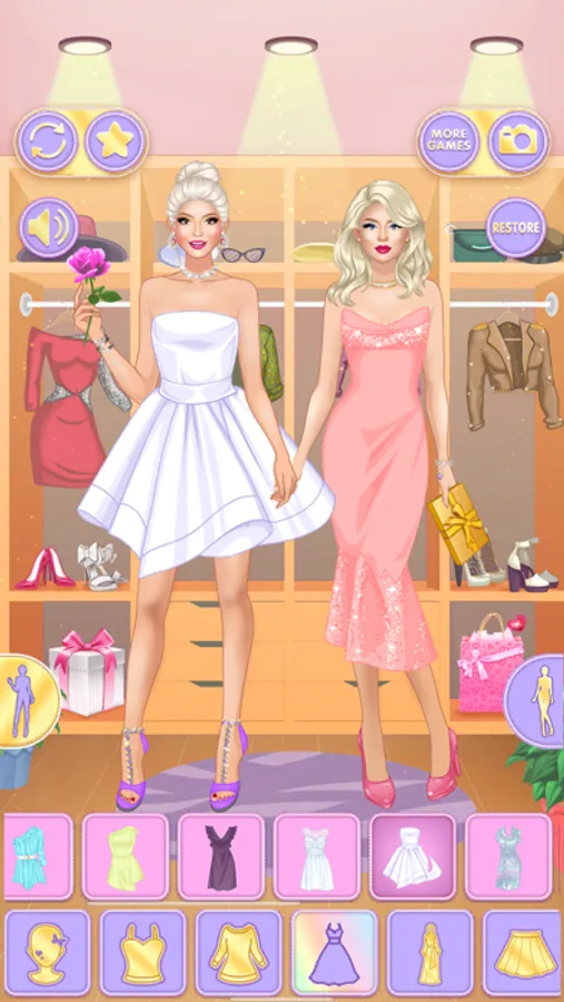 Play pastel dress up games for girls, challenge yourself! Dressing up dolls is amazing: you can make your own fashion contest: take screenshots and share with your college girls team, makeover will show who is the best stylist ever.