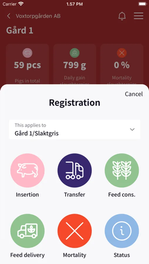 The application is a registration tool that should be used in the stable. Use it together with the web-based dashboard to be able to analyze data, create a productivity report and do follow ups on enhancements in the productivity. Further, it is possible to register different expenses in the dashboard.