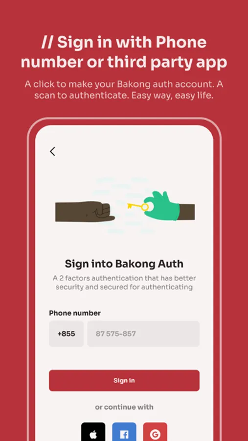 Bakong Auth is a two-factor authentication app that makes it more convenient for you to keep your account secure with a second layer when signing in.