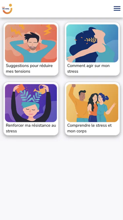 YesWeCool helps looking at symptoms, underlying stress causes and adopting strategies for situations you can’t change.