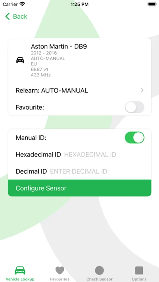 Configure a sensor by creating a new ID or entering an existing OE sensor ID. The Manual ID option enables users to skip the relearn process as the ID (in the ECU) is unchanged.