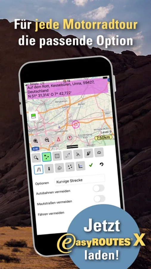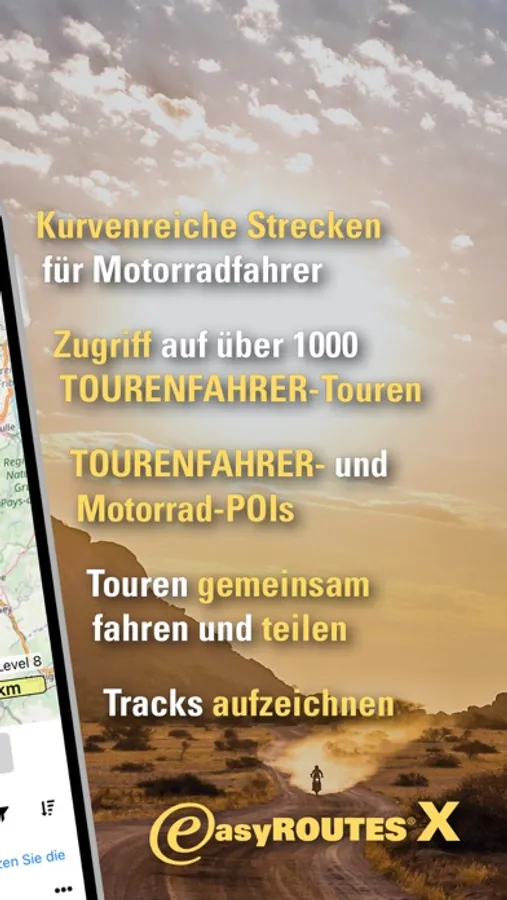 easyROUTES X Mobile kombiniert zwei Jahrzehnte Entwicklungserfahrung von GPS-Software mit hunderttausenden Kilometern auf dem Motorrad.