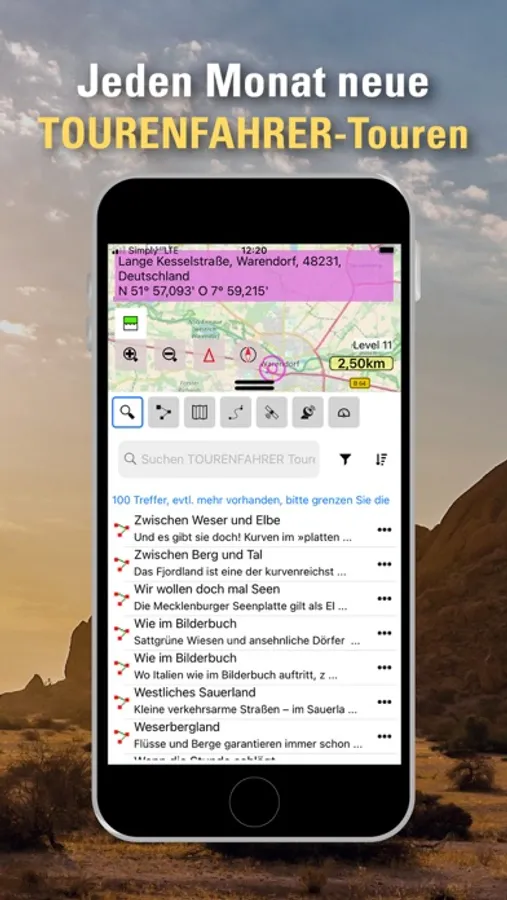 Mit easyROUTES X Mobile haben Sie Vollzugriff auf die gesamte Tourdatenbank des TOURENFAHRER. Lassen Sie sich aus über 1000 Motorradtouren inspirieren, passen Sie diese nach Ihren Wünschen in wenigen Klicks an oder begeben sich direkt auf die Spuren unserer Redaktion. Der Vorrat an für Sie ausgewählten und redaktionell geprüften Motorradtouren wächst jeden Monat.