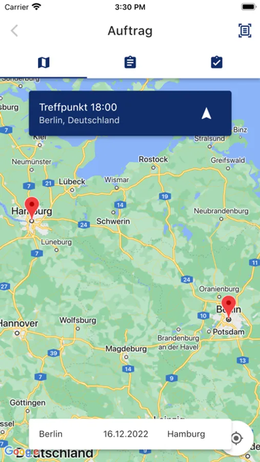 Übersicht und Annahme von Aufträgen für die Schwertransportbegleitung.