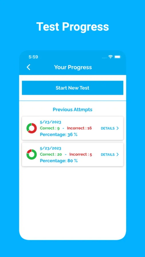 App tracks the users completed practice tests. The app tracks their progress, allowing them to identify areas for improvement and track their overall progress.