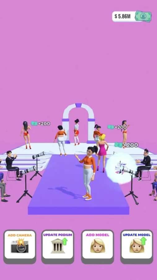 Playing Top Model Clicker is very easy! Add new models, upgrade them and move up the podium earning money for further development. The more models you add, the more you earn!