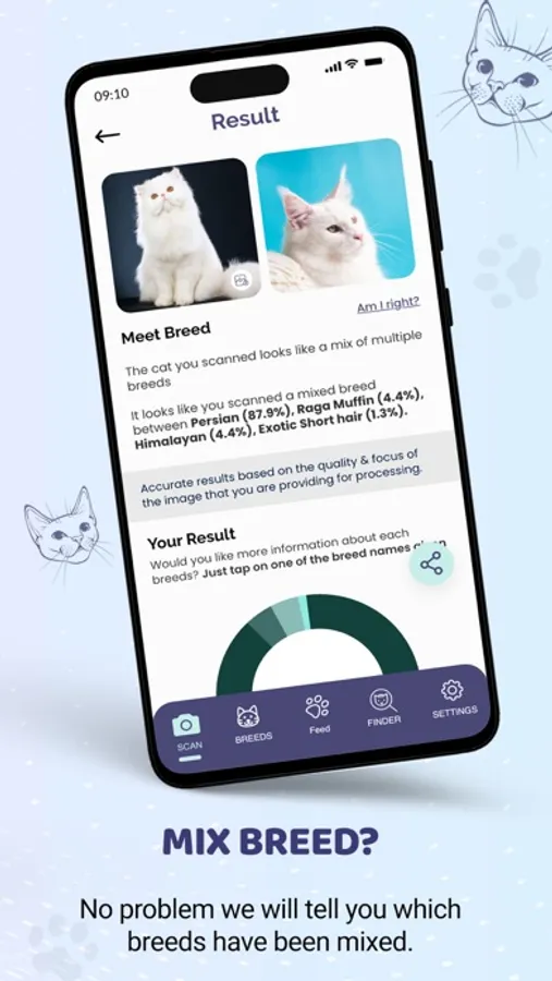 - Our AI algorithm analyses the image and compares it to our database of over 70+ Cat breeds.