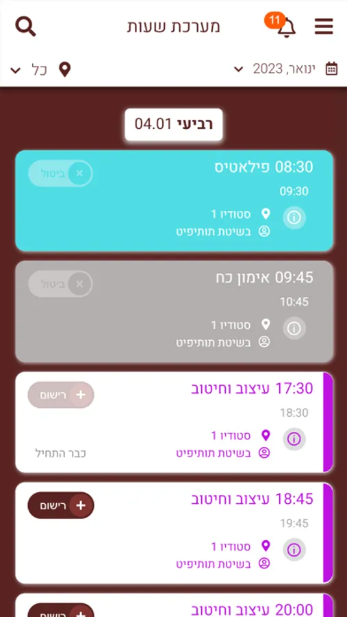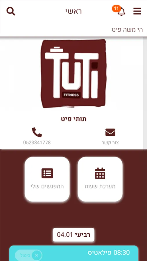 אפליקציה המאפשרת לך להירשם ולבטל ולעקוב אחר שיעורים און ליין בסטודיו TutiFit