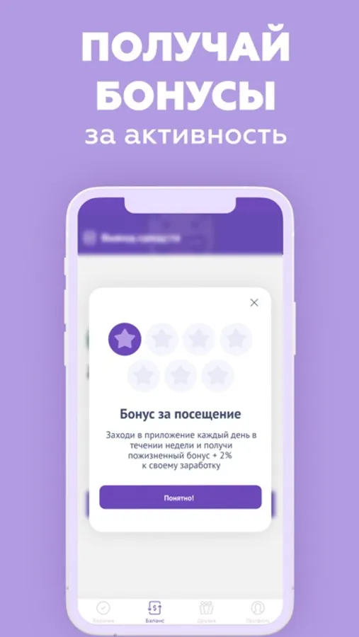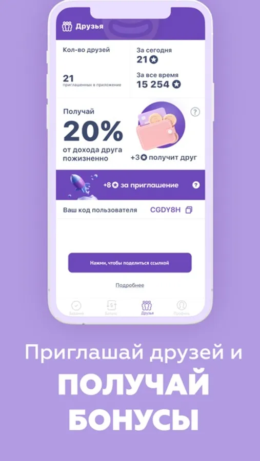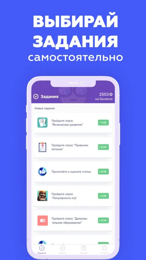 Приложение имеет простой и привлекательный интерфейс. Действуют разные бонусы и реферальная программа. Приложение постоянно развивается, мы добавляем новые фишки, работаем над увеличением количества заданий, чтобы у тебя был выбор.