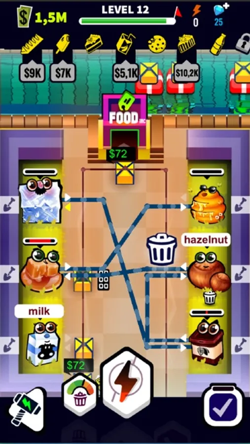 Expand your factory area and unlock new foods to become the world's largest food distributor. You can create countless products, but focus on producing the best ones.