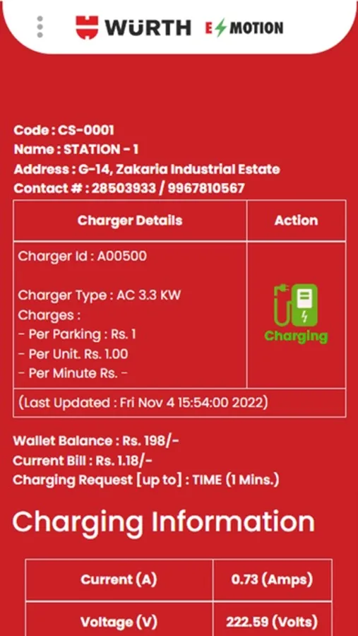 Wuerth E Motion EV CSO Mobile App is for Charger owners with administrative credentials for their charging stations, The App facilitates to set tariff, parking charges applicable for their charging station.CSO (Charging Station Owner) can also charge vehicles, view charging session history and reset fault. Users are advised to go through instruction guide, terms & conditions and FAQ before using the App.
