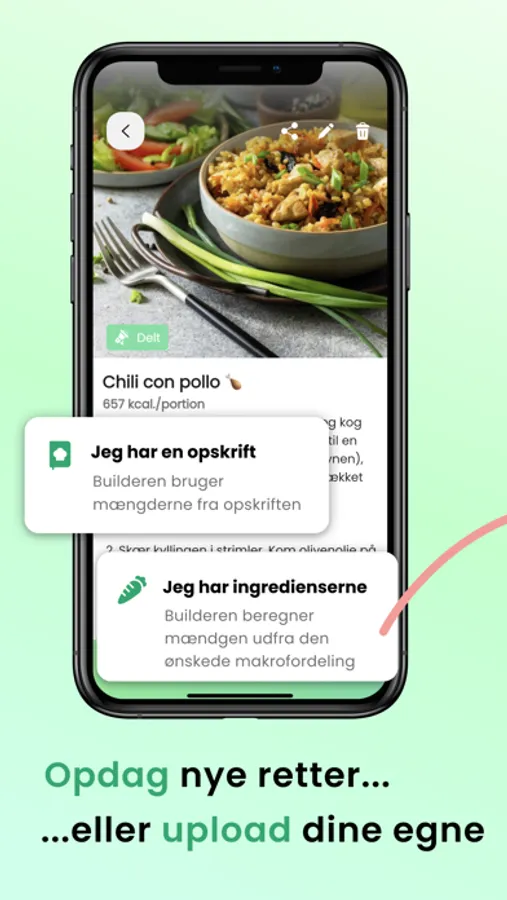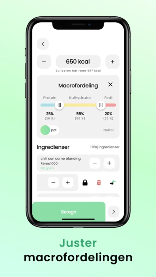 Appen tilpasser det til dig, så din EGEN opskrift får den samme kaloriemængde og næringsfordeling som den på din kostplan.