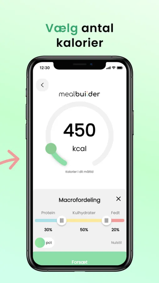 Du indtaster blot den kaloriemængde og næringsfordeling fra din kostplan i appen - og så vælger du selv din egen opskrift, eller de ingredienser du ønsker at anvende i stedet.