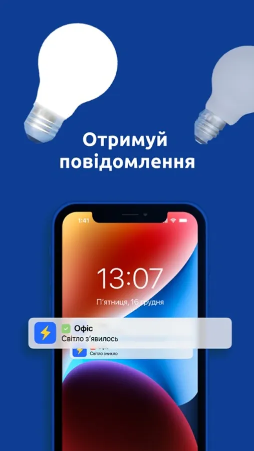 Отримуйте сповіщення, коли світло зникло і з'явилося. Можна не заходити у додаток, але завжди бути в курсі ситуації.