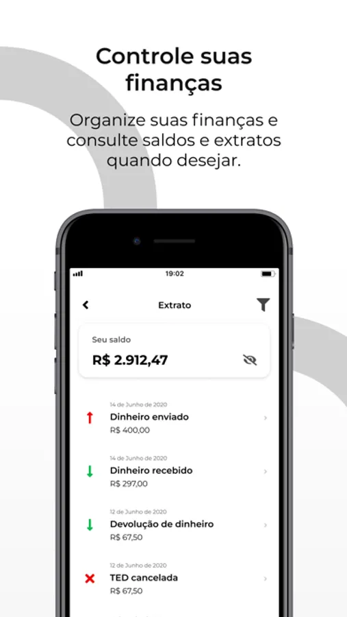 Com sua conta digital, você pode controlar suas finanças sem burocracia e direto do seu celular. Acompanhe saldos e extratos 24 horas por dia, 7 dias por semana, 365 dias por ano. Realize transferências de forma rápida, segura e fácil.
