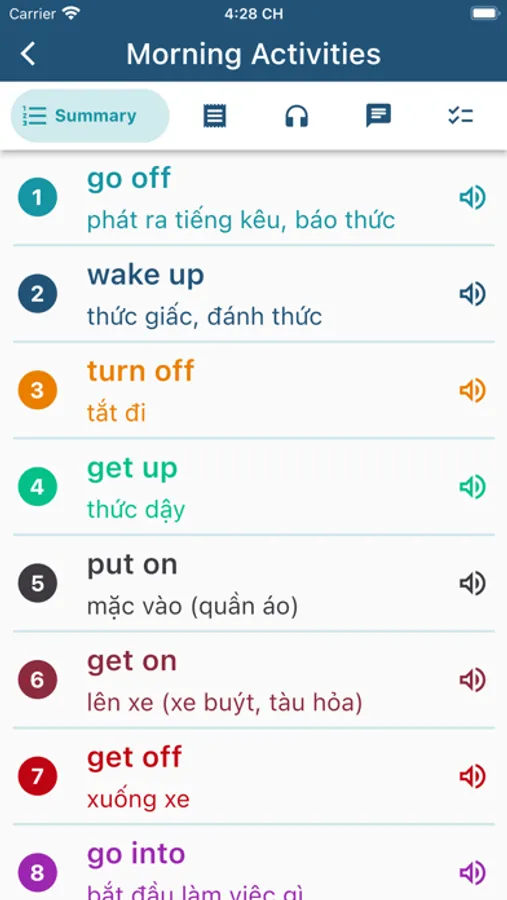 1. Study English phrasal verbs according to topics such as Business, Health, Family, Food,…
