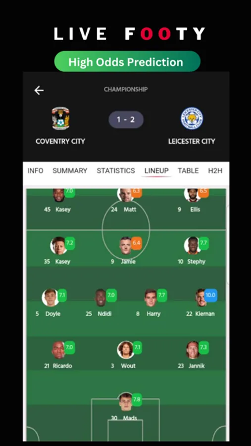 Stay ahead of the game with push notifications for crucial moments like goals, red cards, and other match-changing events.