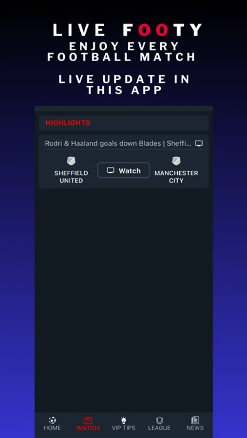 You can watch livestreams of all your favorite team's matches and receive up-to-date notifications for live matches, so you'll never miss any live football match action.