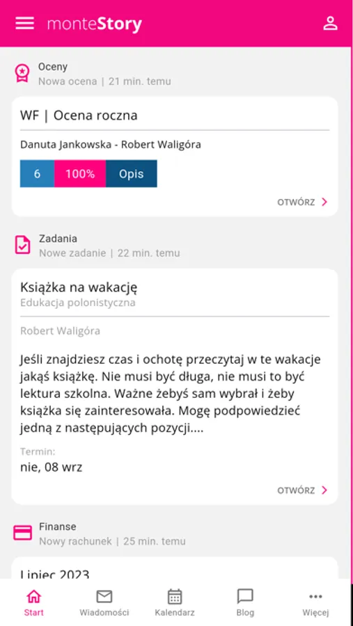 Aplikacja dla rodziców i uczniów placówek Montessori, korzystających z elektronicznego dziennika monteStory.