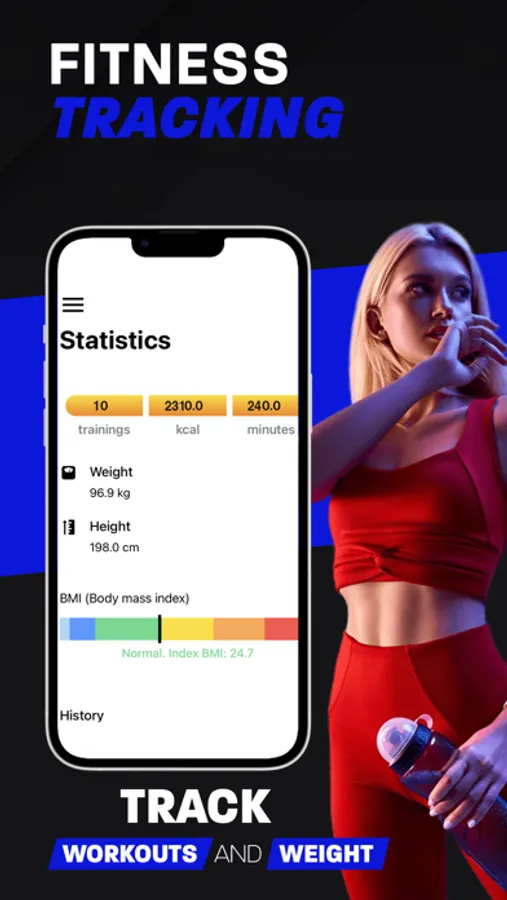 As you complete the workouts, the app will log each training, along with the calories burned. You can also track your body weight, and BMI, along with your workout history and statistics. You can assure that the metrics the app showing is collected from Health app to give you more accurate and personalized training information.