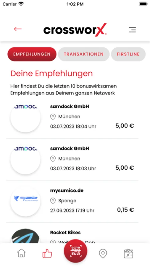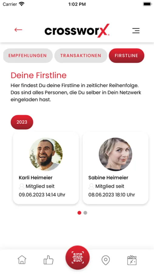 Die App generiert einen Link, den Du über WhatsApp, SMS, E-Mail oder andere Messenger und soziale Netzwerke teilen kannst. Alternativ zeigt Dir die App Deinen persönlichen Empfehlungslink auch als QR-Code an, so dass die Person, mit der Du gerade Zeit verbringst, diesen direkt mit ihrer Kamera abfotografieren und sich in wenigen Schritten registrieren kann. In jedem Fall wird diese Person dauerhaft Deinem Netzwerk zugeordnet.