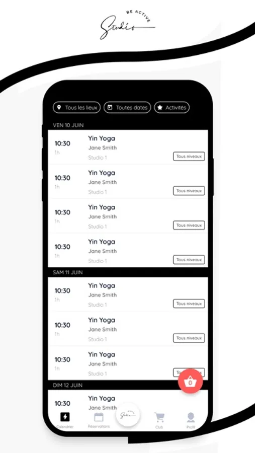 Réservation en ligne de cours de sport ( Fitness, Yoga Vinyasa, Yin Yoga, Cardio Fun, Step..)en présentiel au STUDIO BE ACTIVE.