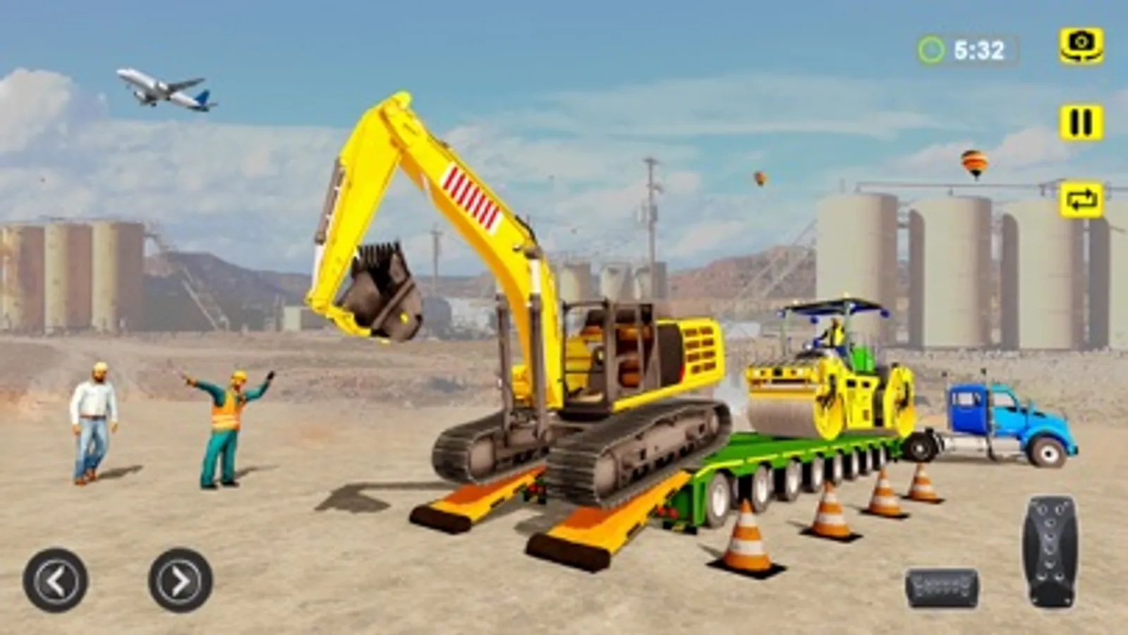 For the best gaming experience of simulation games drive the construction cargo truck and carry construction machinery for runway airport building construction