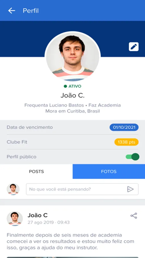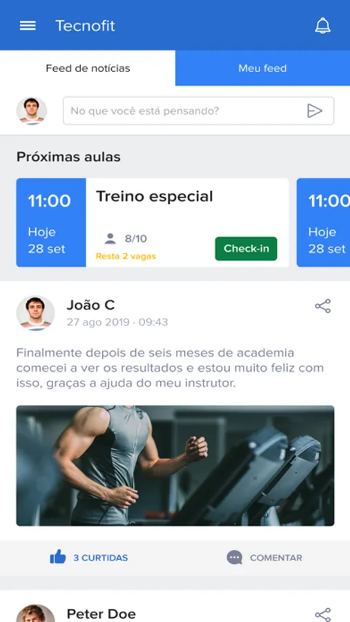 Através do app Asa Beach Tennis o aluno pode interagir com sua rede pela timeline.
